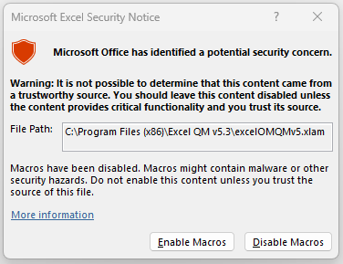 - Then, grant access again to MacRibbonOMQMv5.xlam