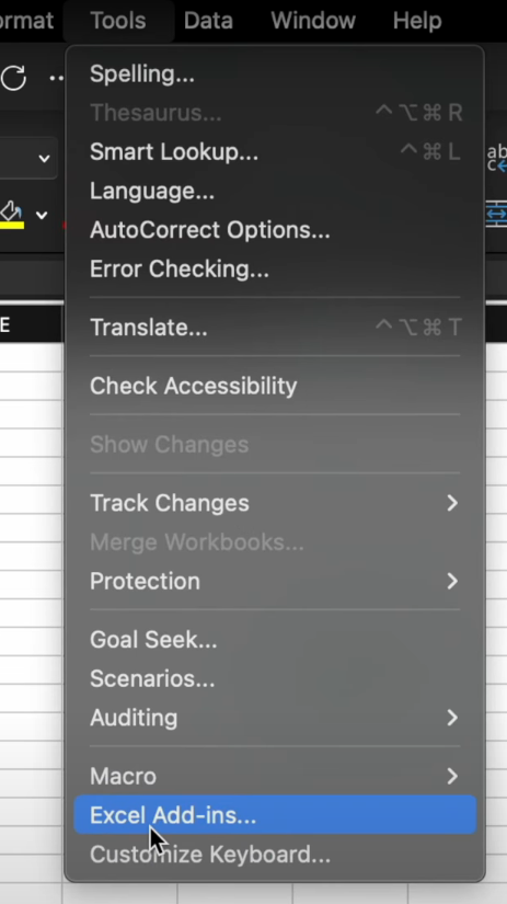 - Now, open Excel. Go to the Tools tab on top of your Excel window. Click on Excel Add-ins...